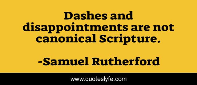 This page presents the quote "Dashes and disappointments are not canonical Scripture.". Author of this quote is Samuel Rutherford. This quote is about glooms, letters, disappointment, dashes,.