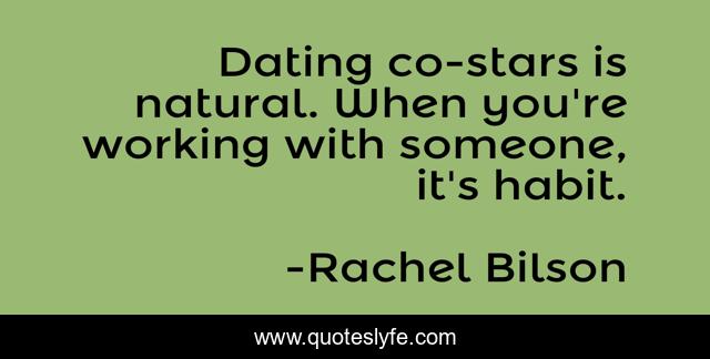 This page presents the quote "Dating co-stars is natural. When you're working with someone, it's habit.". Author of this quote is Rachel Bilson. This quote is about natural, working,.