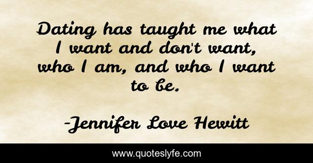 This page presents the quote "Dating has taught me what I want and don't want, who I am, and who I want to be.". Author of this quote is Jennifer Love Hewitt. .