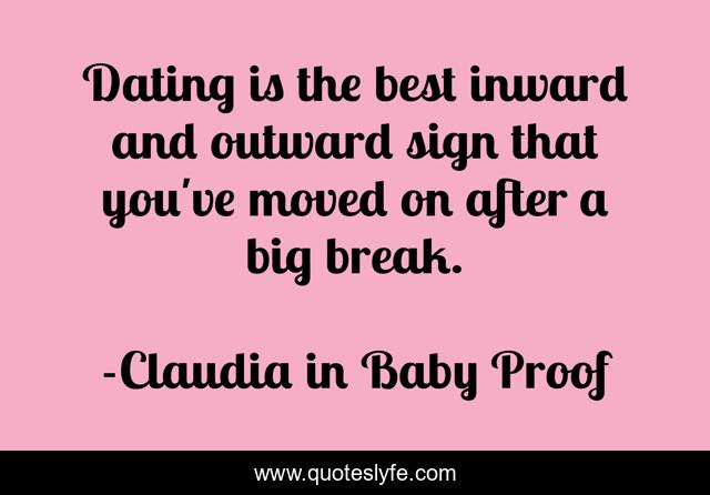 This page presents the quote "Dating is the best inward and outward sign that you've moved on after a big break.". Author of this quote is Claudia in Baby Proof. This quote is about breakup, babyproof,.