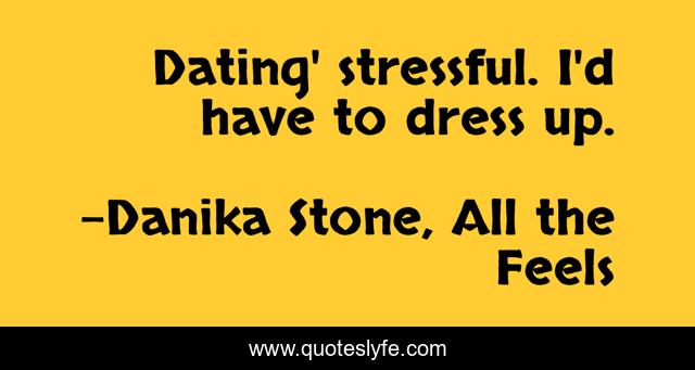 This page presents the quote "Dating' stressful. I'd have to dress up.". Author of this quote is Danika Stone, All the Feels. This quote is about relationships, stress, liv, dressing-up, dating, all-the-feels,.