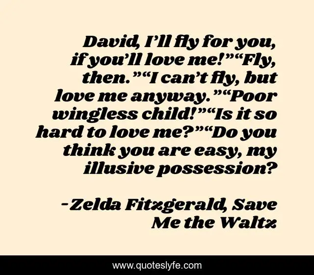 "Zelda Fitzgerald, Save Me the Waltz Quotes." Quoteslyfe.com, 2025. Mon. 08 Dec. 2025. <https://www.quoteslyfe.com/quote/David-I-ll-fly-for-you-if-120506>.