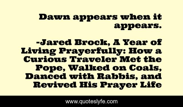 "Jared Brock, A Year of Living Prayerfully: How a Curious Traveler Met the Pope, Walked on Coals, Danced with Rabbis, and Revived His Prayer Life Quotes." Quoteslyfe.com, 2025. Fri. 05 Dec. 2025. <https://www.quoteslyfe.com/quote/Dawn-appears-when-it-appears-193096>.