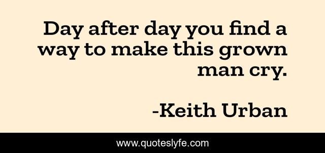This page presents the quote "Day after day you find a way to make this grown man cry.". Author of this quote is Keith Urban. This quote is about grown, cry, days, day, way, find,.