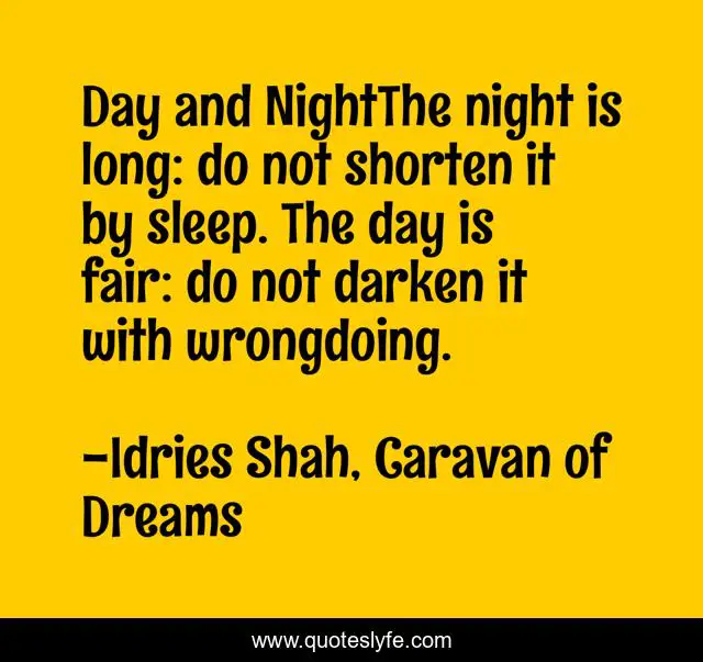 "Idries Shah, Caravan of Dreams Quotes." Quoteslyfe.com, 2025. Fri. 05 Dec. 2025. <https://www.quoteslyfe.com/quote/Day-and-NightThe-night-is-long-do-164076>.