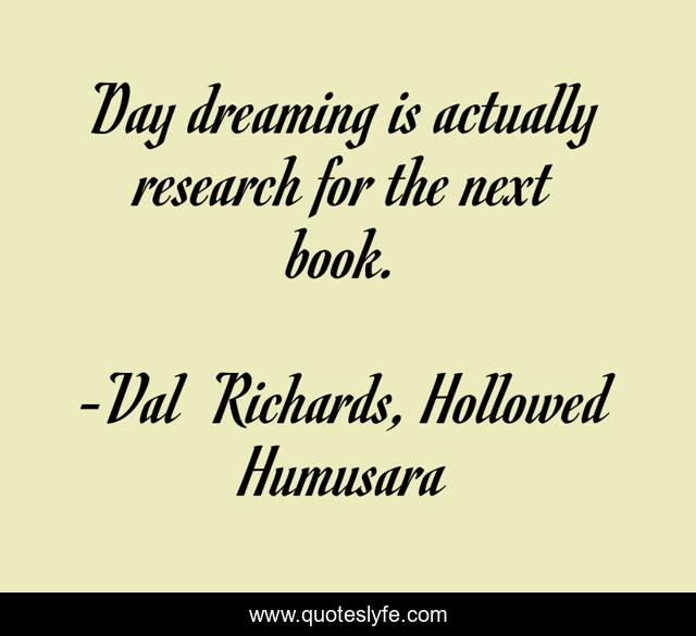"Val Richards, Hollowed Humusara Quotes." Quoteslyfe.com, 2025. Fri. 05 Dec. 2025. <https://www.quoteslyfe.com/quote/Day-dreaming-is-actually-research-for-the-237950>.