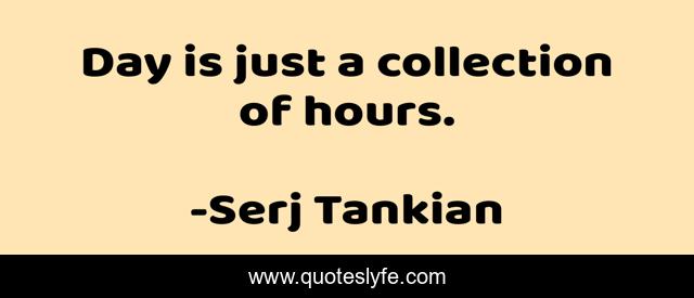 This page presents the quote "Day is just a collection of hours.". Author of this quote is Serj Tankian. This quote is about clock, day, time,.