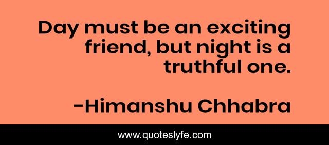 This page presents the quote "Day must be an exciting friend, but night is a truthful one.". Author of this quote is Himanshu Chhabra. This quote is about exciting, truthful, day, friend, night,.