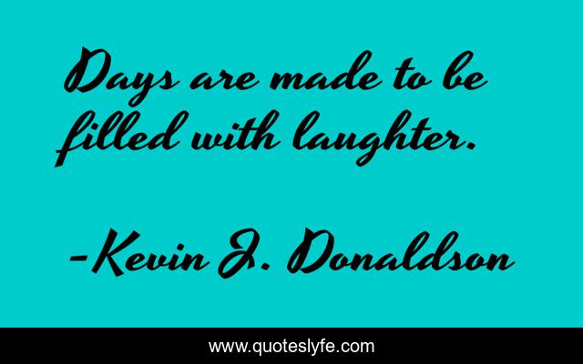 This page presents the quote "Days are made to be filled with laughter.". Author of this quote is Kevin J. Donaldson. This quote is about life, laughter, happiness,.