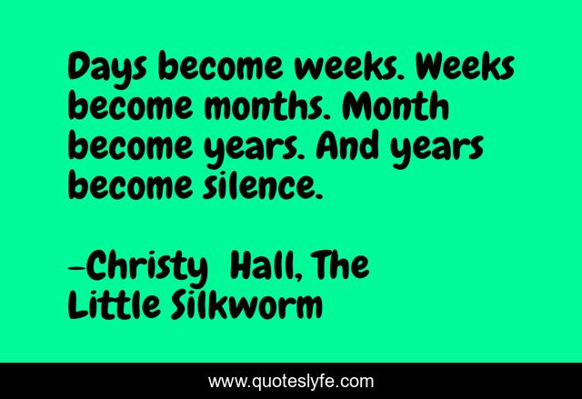 "Christy Hall, The Little Silkworm Quotes." Quoteslyfe.com, 2025. Sat. 06 Dec. 2025. <https://www.quoteslyfe.com/quote/Days-become-weeks-Weeks-become-months-Month-241676>.