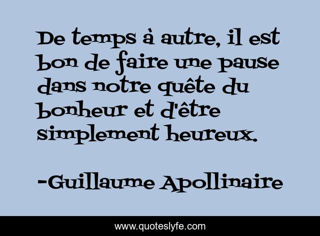 This page presents the quote "De temps à autre, il est bon de faire une pause dans notre quête du bonheur et d'être simplement heureux.". Author of this quote is Guillaume Apollinaire. .