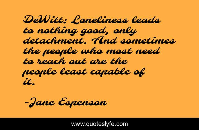 "Jane Espenson Quotes." Quoteslyfe.com, 2025. Mon. 08 Dec. 2025. <https://www.quoteslyfe.com/quote/DeWitt-Loneliness-leads-to-nothing-good-only-138698>.