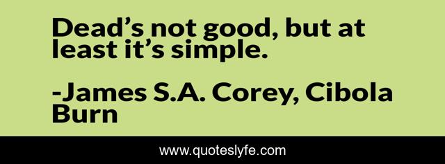 This page presents the quote "Dead’s not good, but at least it’s simple.". Author of this quote is James S.A. Corey, Cibola Burn. This quote is about simple, simplicity, death, dying,.