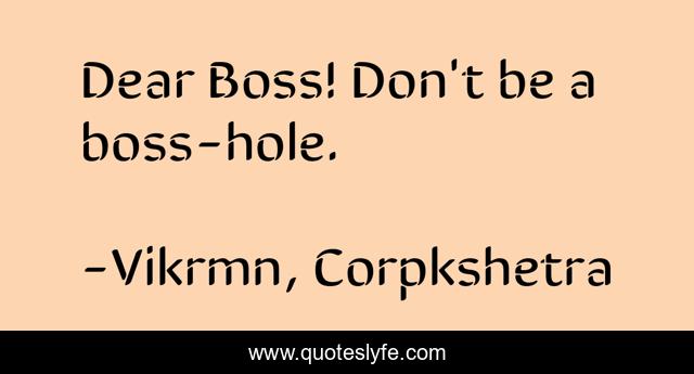 This page presents the quote "Dear Boss! Don't be a boss-hole.". Author of this quote is Vikrmn, Corpkshetra. This quote is about corpkshetra, confidence, vikram, bosshole, positive, motivational, ca-vikram-verma, chartered-accountant, vvck,.