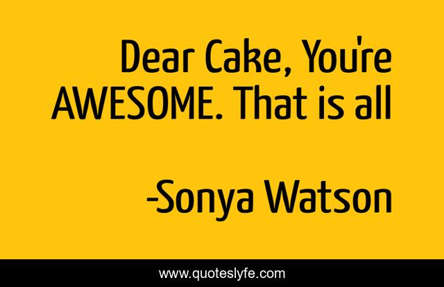 "Sonya Watson Quotes." Quoteslyfe.com, 2025. Fri. 05 Dec. 2025. <https://www.quoteslyfe.com/quote/Dear-Cake-You-re-AWESOME-That-is-197572>.