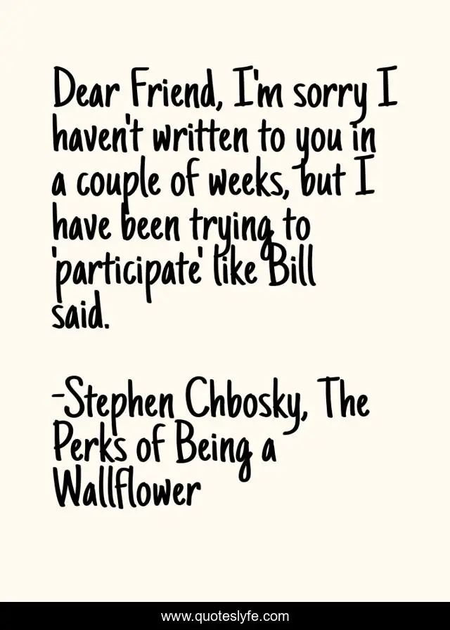 "Stephen Chbosky, The Perks of Being a Wallflower Quotes." Quoteslyfe.com, 2025. Tue. 09 Dec. 2025. <https://www.quoteslyfe.com/quote/Dear-Friend-I-m-sorry-I-haven-229335>.