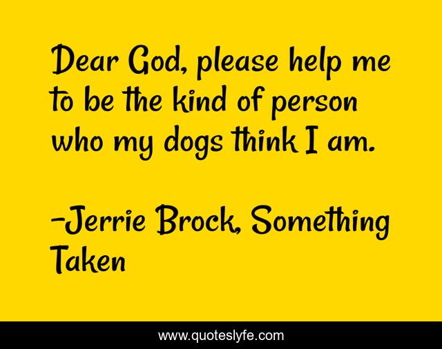 This page presents the quote "Dear God, please help me to be the kind of person who my dogs think I am.". Author of this quote is Jerrie Brock, Something Taken. This quote is about police-corruption, coming-of-age, urban-fiction, police-service, crime,.