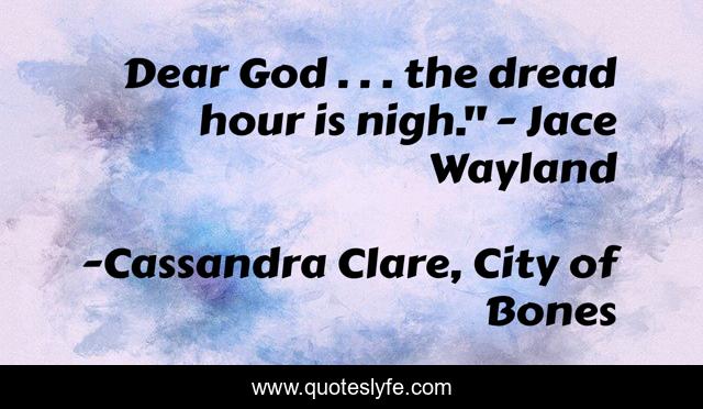This page presents the quote "Dear God . . . the dread hour is nigh." - Jace Wayland". Author of this quote is Cassandra Clare, City of Bones. This quote is about the-shadowhunter-chronicles, hour, city-of-bones, the-mortal-instruments, god, jace-wayland, cassandra-clare, shadowhunters, dread-hour,.