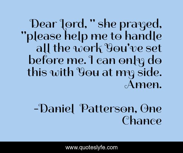 This page presents the quote "Dear Lord, " she prayed, "please help me to handle all the work You've set before me. I can only do this with You at my side. Amen.". Author of this quote is Daniel Patterson, One Chance. This quote is about religion, christian-fiction,.