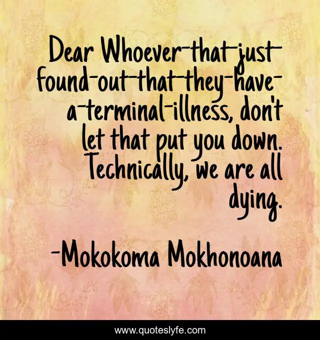 Dear Whoever-that-just-found-out-that-they-have-a-terminal-illness, don't let that put you down. Technically, we are all dying.