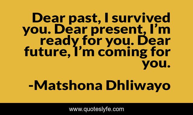 "Matshona Dhliwayo Quotes." Quoteslyfe.com, 2025. Mon. 08 Dec. 2025. <https://www.quoteslyfe.com/quote/Dear-past-I-survived-you-Dear-present-58093>.