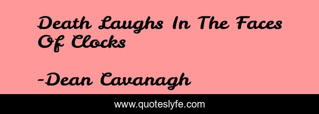 This page presents the quote "Death Laughs In The Faces Of Clocks". Author of this quote is Dean Cavanagh. This quote is about dean-cavanagh, death, laughter,.