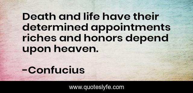 This page presents the quote "Death and life have their determined appointments riches and honors depend upon heaven.". Author of this quote is Confucius. This quote is about life, heaven, determined,.