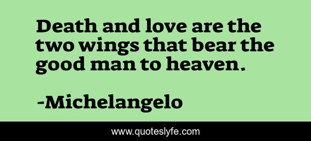 This page presents the quote "Death and love are the two wings that bear the good man to heaven.". Author of this quote is Michelangelo. This quote is about death, good, man,.