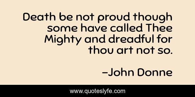 This page presents the quote "Death be not proud though some have called Thee Mighty and dreadful for thou art not so.". Author of this quote is John Donne. This quote is about death, dying,.