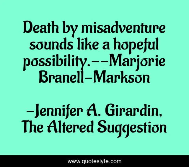 "Jennifer A. Girardin, The Altered Suggestion Quotes." Quoteslyfe.com, 2025. Sat. 06 Dec. 2025. <https://www.quoteslyfe.com/quote/Death-by-misadventure-sounds-like-a-hopeful-193432>.