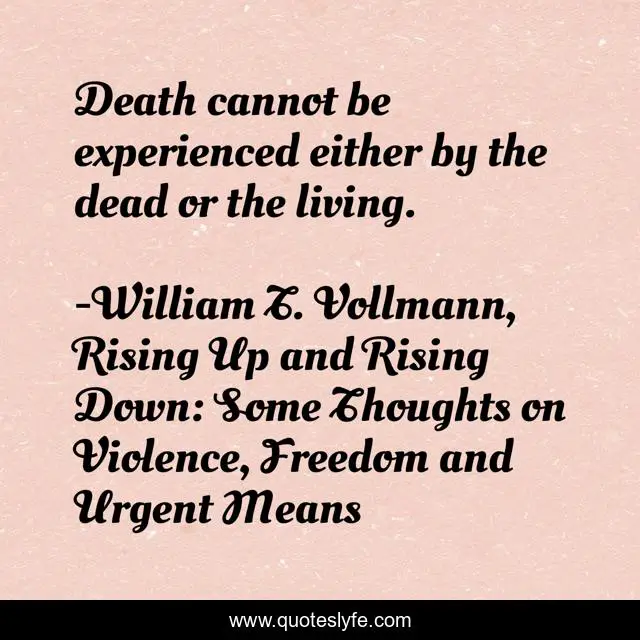 "William T. Vollmann, Rising Up and Rising Down: Some Thoughts on Violence, Freedom and Urgent Means Quotes." Quoteslyfe.com, 2025. Fri. 05 Dec. 2025. <https://www.quoteslyfe.com/quote/Death-cannot-be-experienced-either-by-the-105841>.