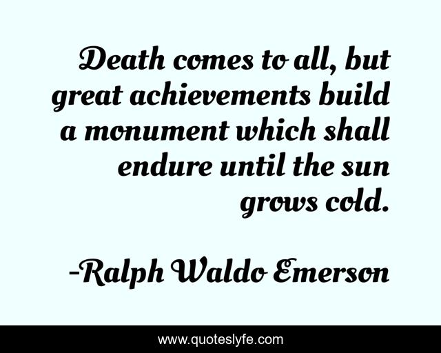 "Ralph Waldo Emerson Quotes." Quoteslyfe.com, 2025. Mon. 08 Dec. 2025. <https://www.quoteslyfe.com/quote/Death-comes-to-all-but-great-achievements-294813>.