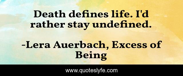 "Lera Auerbach, Excess of Being Quotes." Quoteslyfe.com, 2025. Fri. 05 Dec. 2025. <https://www.quoteslyfe.com/quote/Death-defines-life-I-d-rather-stay-257537>.