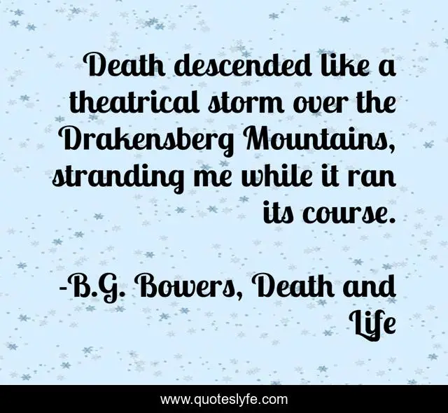 "B.G. Bowers, Death and Life Quotes." Quoteslyfe.com, 2025. Mon. 08 Dec. 2025. <https://www.quoteslyfe.com/quote/Death-descended-like-a-theatrical-storm-over-220237>.