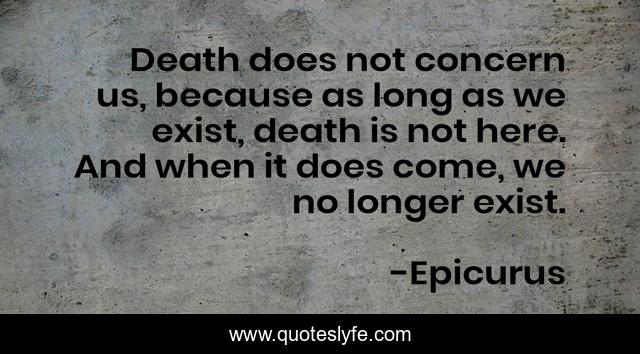 This page presents the quote "Death does not concern us, because as long as we exist, death is not here. And when it does come, we no longer exist.". Author of this quote is Epicurus. .