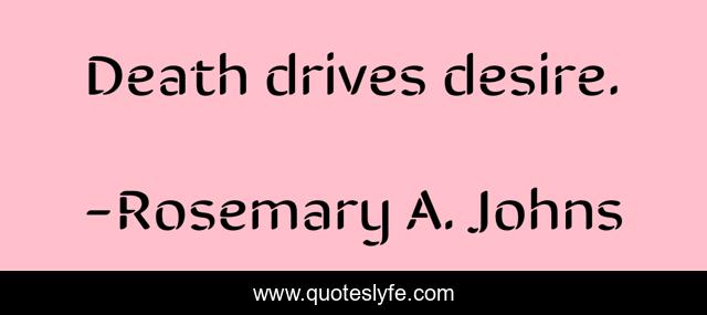 "Rosemary A. Johns Quotes." Quoteslyfe.com, 2025. Mon. 08 Dec. 2025. <https://www.quoteslyfe.com/quote/Death-drives-desire-82418>.