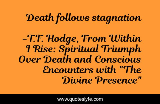 "T.F. Hodge, From Within I Rise: Spiritual Triumph Over Death and Conscious Encounters with "The Divine Presence" Quotes." Quoteslyfe.com, 2025. Sat. 06 Dec. 2025. <https://www.quoteslyfe.com/quote/Death-follows-stagnation-211880>.