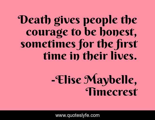 This page presents the quote "Death gives people the courage to be honest, sometimes for the first time in their lives.". Author of this quote is Elise Maybelle, Timecrest. This quote is about dark, philisophical, timecrest, truth,.