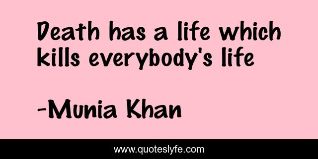 This page presents the quote "Death has a life which kills everybody's life". Author of this quote is Munia Khan. This quote is about dark, life, death, slay, killer, slayer, kill, death-and-dying,.