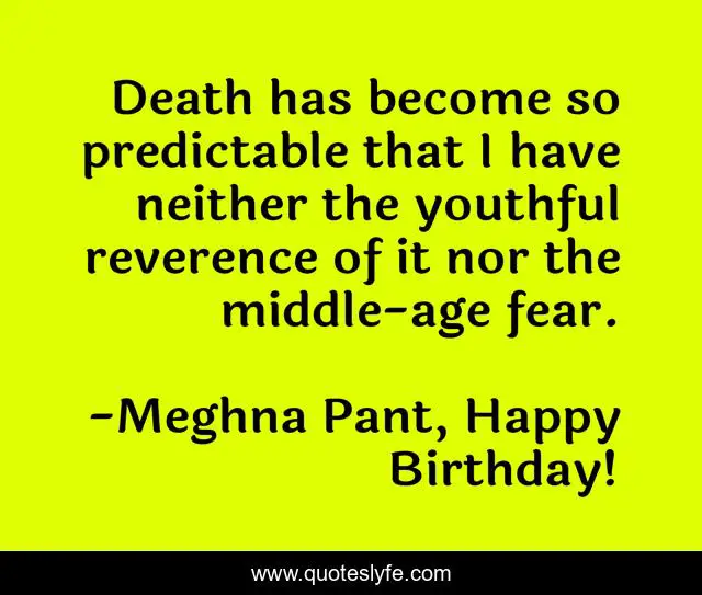 "Meghna Pant, Happy Birthday! Quotes." Quoteslyfe.com, 2025. Sat. 06 Dec. 2025. <https://www.quoteslyfe.com/quote/Death-has-become-so-predictable-that-I-139277>.