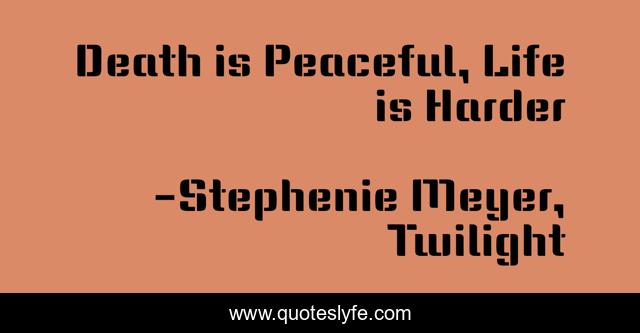 "Stephenie Meyer, Twilight Quotes." Quoteslyfe.com, 2025. Fri. 05 Dec. 2025. <https://www.quoteslyfe.com/quote/Death-is-Peaceful-Life-is-Harder-1979>.