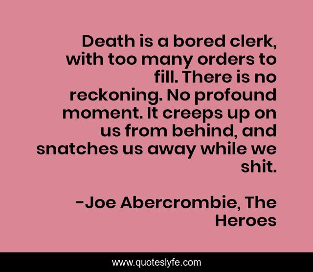 "Joe Abercrombie, The Heroes Quotes." Quoteslyfe.com, 2025. Fri. 05 Dec. 2025. <https://www.quoteslyfe.com/quote/Death-is-a-bored-clerk-with-too-21678>.