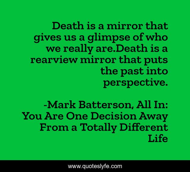 "Mark Batterson, All In: You Are One Decision Away From a Totally Different Life Quotes." Quoteslyfe.com, 2025. Sat. 06 Dec. 2025. <https://www.quoteslyfe.com/quote/Death-is-a-mirror-that-gives-us-181190>.