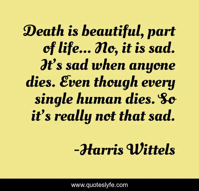 "Harris Wittels Quotes." Quoteslyfe.com, 2025. Fri. 05 Dec. 2025. <https://www.quoteslyfe.com/quote/Death-is-beautiful-part-of-life-No-159880>.
