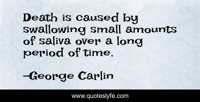 This page presents the quote "Death is caused by swallowing small amounts of saliva over a long period of time.". Author of this quote is George Carlin. This quote is about small, long, time,.