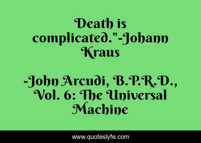 "John Arcudi, B.P.R.D., Vol. 6: The Universal Machine Quotes." Quoteslyfe.com, 2025. Fri. 05 Dec. 2025. <https://www.quoteslyfe.com/quote/Death-is-complicated-Johann-Kraus-205779>.