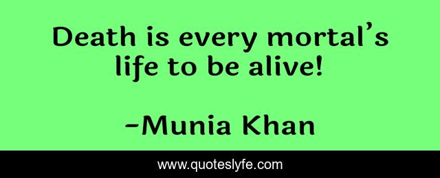 This page presents the quote "Death is every mortal’s life to be alive!". Author of this quote is Munia Khan. This quote is about death, live-life, mortals, alive, stay, live, mortal, mortality,.