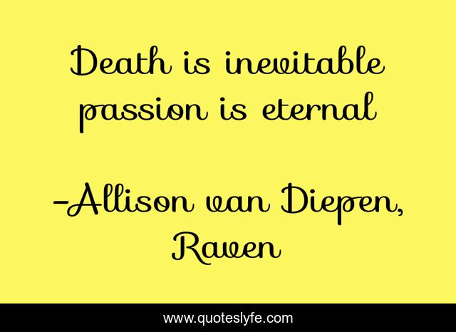 "Allison van Diepen, Raven Quotes." Quoteslyfe.com, 2025. Sat. 06 Dec. 2025. <https://www.quoteslyfe.com/quote/Death-is-inevitable-passion-is-eternal-21297>.