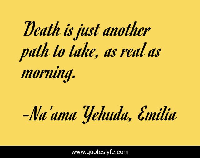 This page presents the quote "Death is just another path to take, as real as morning.". Author of this quote is Na'ama Yehuda, Emilia. This quote is about acceptance, death, old-age, truth, life-cycle,.