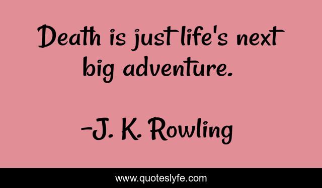 This page presents the quote "Death is just life's next big adventure.". Author of this quote is J. K. Rowling. This quote is about life, adventure, next,.